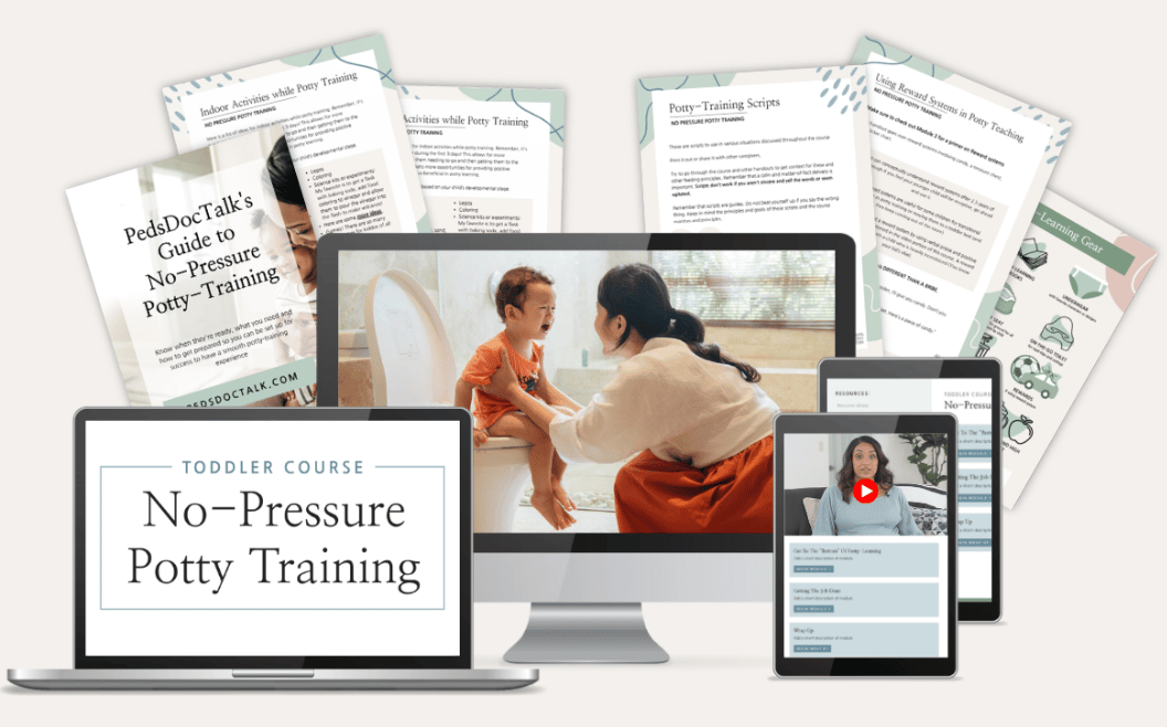 If you’re thinking about starting potty training soon, or recently began and want a simple, low-stress approach, check out the PedsDocTalk No-Pressure Potty Training Course. It walks you through realistic steps, language, and strategies that actually work for toddlers.
